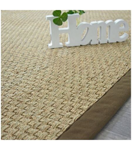 DÉCOWEB Tapis jonc de mer - Paro fin natté 4x4 - Ganse coton marron - 80 x 150 cm