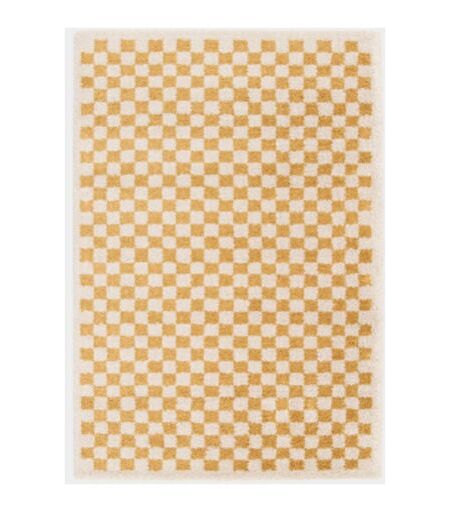Décoweb - Tapis damier à poils longs - Colorama - Jaune rétro - 200 x 290 cm