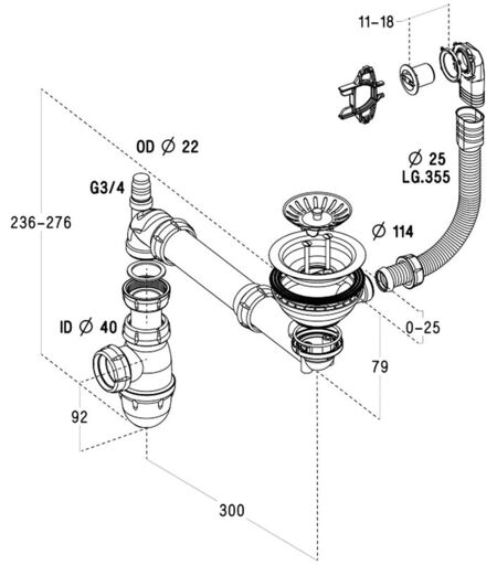 > Vidage évier manuel 1 bac > Pour évier céramique CISTERNA et FELIX > Diamètre bonde évier : 114 mm > Evacuation évier ...