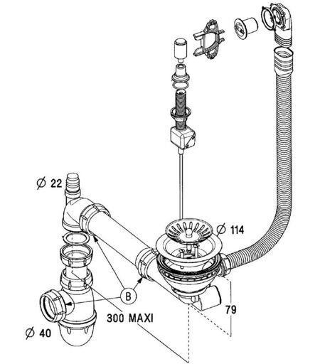 > Vidage évier automatique 1 cuve > Pour évier SUBWAY, CISTERNA 45, CISTERNA 60 > Pour évier de la marque Villeroy & Boch > Trou manette Ø 25 mm ...