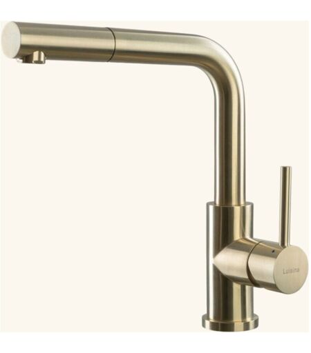 POINTS FORTS : • Robinet doré H 290 x L 220 mm • • Douchette extractible mono jet • • Mitigeur pour cuisine • • Robinetterie cuisine avec flexibles CARACTÉRISTIQUES : • Débit à 3 bars : 8.51 l/min • Degré de rotation : 360° • Limiteur de température : non • Type de bec : bec coudé • Flexible de raccordement : oui • Normes / Certifications : normes Européennes 1111-817-1717 / ACS Attestation de Conformité Sanitaire • Douchette : douchette mono jet • Marque : Luisina • Coloris : Doré • Type de mécanisme : Cartouche à disque céramique • Poids brut (Kg) : 2.96 • Poids net (Kg) : 2.96 • Diamètre de la base (mm) : 54 • Hauteur sous bec (mm) : 255 • Longueur du bec (mm) : 220 • Diamètre de perçage : 35 • Hauteur (mm) : 290 • Bon à savoir : ce produit ne présente pas de spécificités supplémentaires ...
