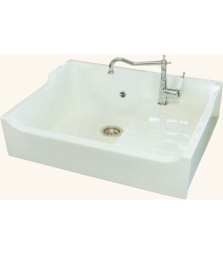 CUISISSIMO Évier timbre d'office céramique blanc AIMÉ 1 bac 1 égouttoir