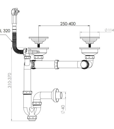 Vidage CUIPD663-A pour évier inox NINO 2 bacs 120 cm - Siphon gain de place ...