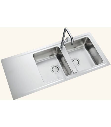 POINTS FORTS : • Évier encastrable 117x51 cm • • Meuble sous évier 90 cm minimum• • Evier vidage automatique • • Évier réversible CARACTÉRISTIQUES : • Équipements inclus : bonde(s), siphon, trop plein, tuyaux d'évacuation • Marque : Luisina • Matériau : Inox • Type de pose : à encastrer • Positionnement égouttoir : réversible • Coloris : Inox • Emplacement robinetterie : percé • Nombre de bacs : 2 bacs • Poids net (Kg) : 15.8 • Trop plein : oui • Sous-meuble : 90 cm • Longueur (mm) : 1170 • Largeur (mm) : 510 • Longueur d'encastrement (mm) : 1150 • Largeur d'encastrement (mm) : 490 • Grande dimension cuve 1 (mm) : 400 • Petite dimension cuve 1 (mm) : 340 • Profondeur cuve 1 (mm) : 195 • Diamètre bonde cuve 1 (mm) : 90 • Grande dimension cuve 2 (mm) : 400 • Petite dimension cuve 2 (mm) : 340 • Profondeur cuve 2 (mm) : 195 • Diamètre bonde cuve 2 (mm) : 90 • Bon à savoir : ce produit ne présente pas de spécificités supplémentaires • Vidage : automatique • Référence vidage : le vidage ...