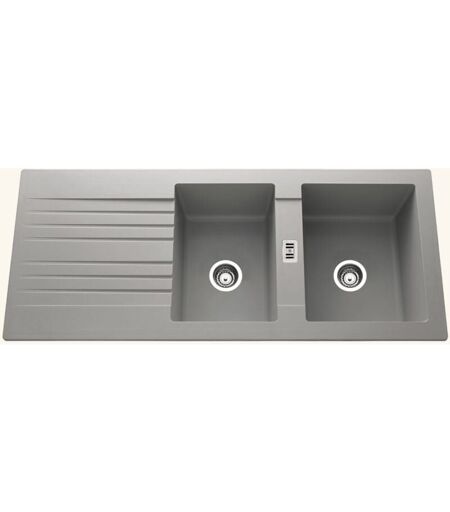 Cuisissimo - vier résine gris béton pluton 2 bacs 1 égouttoir