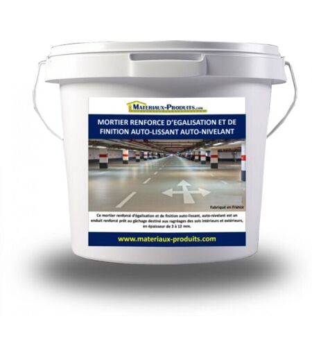 Ce Mortier d'égalisation et de finition auto-lissant, auto-nivelant est un enduit prêt au gâchage destiné aux ragréages des sols intérieurs et extérieurs, en épaisseur de 3 à 12 mm. Il peut servir pour des rattrapages ponctuels jusqu'à 20 mm. Il peut être appliqué sur des supports comme : Chape Ciment, Dalle béton, éléments préfabriqués. Ce produit peut rester nu ou recevoir une Peinture de sol, un Carrelage collé (compatible avec les mortiers colle). Il ne sera pas appliqué sur sols friables, laitances, anciens revêtements et sols ne présentant pas d’écoulement des eaux de pluie. Il se caractérise par un feuil très dur, une porosité très fermée ce qui le rend imperméable. CONSOMMATION DE MORTIER RENFORCÉ D’ÉGALISATION ET DE FINITION AUTO-LISSANT, AUTO-NIVELANT 1,8 kg par m² et par mm d’épaisseur. AVANTAGES DE MORTIER RENFORCÉ D’ÉGALISATION ET DE FINITION AUTO-LISSANT, AUTO-NIVELANT • Prêt à gacher • Intérieur / Extérieur • Très hautes performances • Forte résistance à l’abrasion et ...