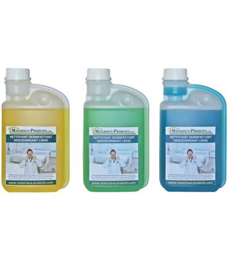 Ce produit permet de Nettoyer , Désinfecter et Désodoriser votre Linge . Il possède les propriétés désinfectantes sur les germes suivants : • Pseudomonas Aeruginosa • Escherichia Coli • Staphylococcus Aureus • Enterococcus Faccium • Mycobacterium Smegmatis Il est conforme aux normes AFNOR Bactéricide : NFT 72-150 CONSOMMATION & CONSEILS D'EMPLOI DE NETTOYANT DÉSINFECTANT DÉSODORISANT LINGE Le nettoyage et la désinfection du linge peuvent s’effectuer à la main ou en machine à laver. • A la main : laisser tremper 10 minutes pour une désinfection parfaite. • En machine à laver : dilution à 0,2 % soit 20 ml pour 10 litres d'eau (norme AFNOR NFT 72-150). DOMAINES D'APPLICATION DE NETTOYANT DÉSINFECTANT DÉSODORISANT LINGE Ce produit est particulèrement utile pour les draps, les champs, les blouses du personnel médical dans les hôpitaux, les cliniques, les écoles, les crèches, les Restaurants... Il peut être utilisé à usage personnel. Fabriqué en France ...