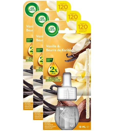 AIR WICK Lot de 3 Recharges Diffuseur désodorisant Electrique Huiles essentielles Vanille & Beurre de Karité