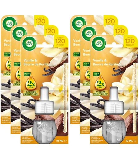 AIR WICK Lot de 6 Recharges Diffuseur désodorisant Electrique Huiles essentielles Vanille & Beurre de Karité