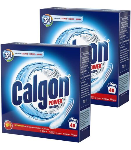CALGON Lot de 2 Poudres 3 en1 Anticalcaire Nettoyant Lave-Linge - 40 Lavages