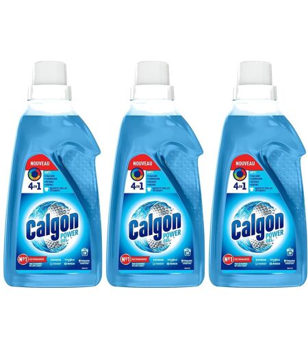 CALGON Lot de 3 Gels Power 4en1 Anti Calcaire Lave Linge, Anti-Corrosion, Résidus et Odeurs - 1,5 L