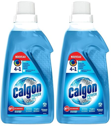 CALGON Lot de 2 Gels Power 4en1 Anti Calcaire Lave Linge, Anti-Corrosion, Résidus et Odeurs - 1,5 L