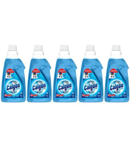 CALGON Lot de 5 Gels Power 4en1 Anti Calcaire Lave Linge, Anti-Corrosion, Résidus et Odeurs - 1,5 L