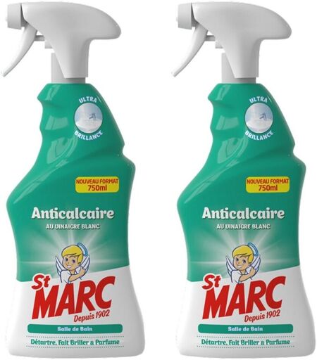 ST MARC Lot de 2 Pistolets Spray Désinfectant et Nettoyant Anticalcaire au Vinaigre Blanc 750 ml