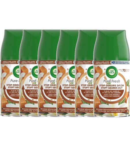 AIR WICK Lot de 6 Recharges Freshmatic Pure Fresh Vanille et Délice de Caramel -250ml