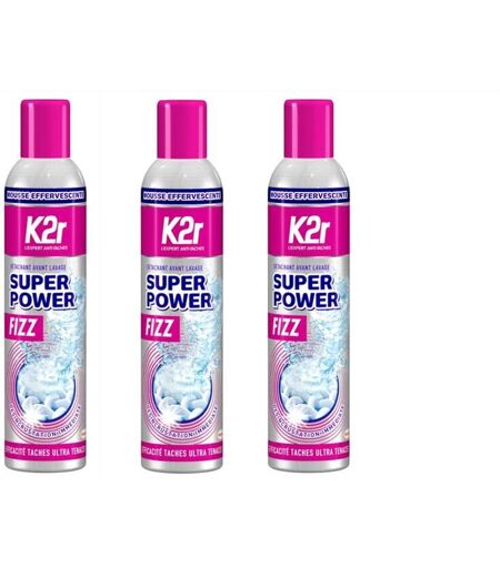 K2r Lot de 3 Aérosols 300mL Super Power Fizz ¿ Détachant avant-lavage ¿ décolle les taches