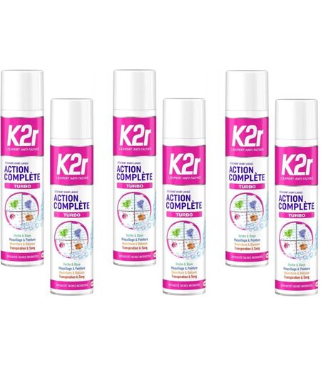 K2r Lot de 6 Actions Complète Turbo ¿ Aérosol (400mL) ¿ Détachant avant-lavage ¿ Tous types de taches ¿ Même Incrustées