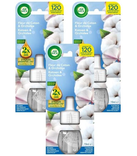 AIR WICK Lot de 3 Recharges Diffuseur désodorisant Electrique Huiles essentielles Coton et Orchidée