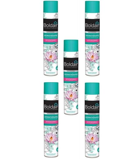 BOLDAIR Lot de 5 Désodorisants Aromathérapie 500 ml Activ Sensitive patchouli personnes sensibles