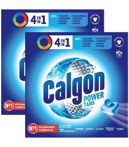 CALGON Lot de 2 4en1s Pastilles Anticalcaire Nettoyant pour Lave-linge - 75 tablettes