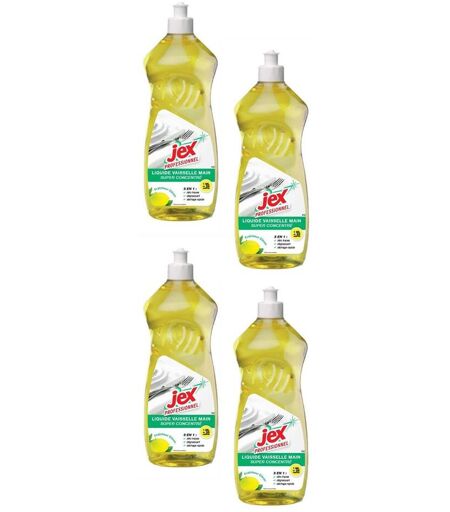 JEX Professionnel Lot de 4 Flacons 1 Litre de Liquide vaisselle doux pour les mains parfum citron