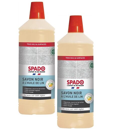 Spado Lot de 2 Flacons 1 Litre Savon noir à l'huile de lin - Dégraisse, nourrit et brille