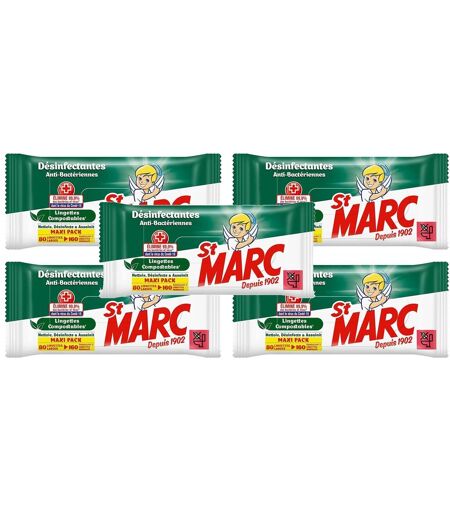 ST MARC Lot de 5 Lingettes Biodégradables Larges Désinfectantes x80