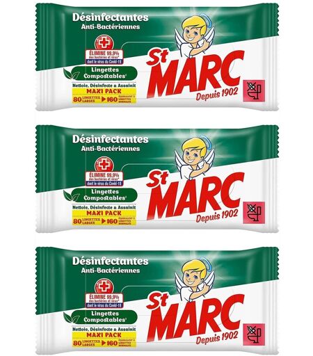ST MARC Lot de 3 Lingettes Biodégradables Larges Désinfectantes x80