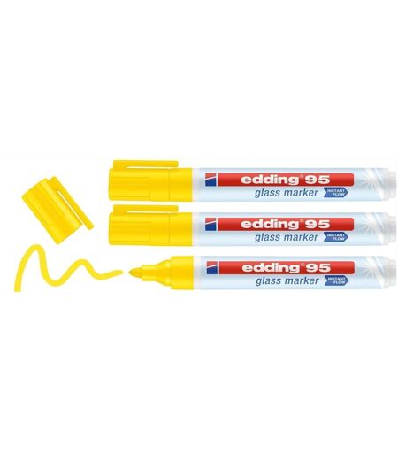 Edding Lot De 3 Marqueurs Pour Verre 95 Jaune 1,5-3 Mm