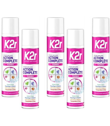 K2r Lot de 5 Actions Complète Turbo ¿ Aérosol (400mL) ¿ Détachant avant-lavage ¿ Tous types de taches ¿ Même Incrustées
