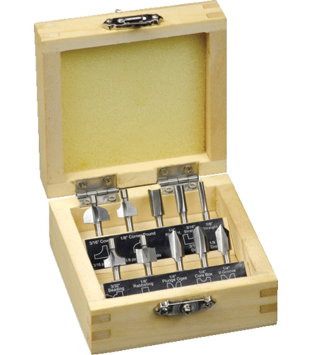 Coffret de 10 fraises à rainurer, à congé, 1/4 rond, à feuillures, 1/4 rond plongeante, à gorge, à rainurer en V.OTG• 3 fraises à rainurer Ø 3 - 4 et 6 mm• 1 fraise à congé Ø 12,5 mm• 2 fraises 1/4 rond rayon 3,2 et 2,4 mm• 1 fraise à feuillures Ø 9,5 mm• 1 fraise 1/4 rond plongeante Ø 6,35 mm• 1 fraise à gorge Ø 6,35 mm• 1 fraise à rainurer en V Ø 6,35 mm.Queue cylindrique Ø 3,2 mm ...