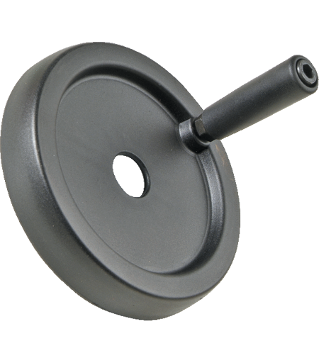 Pièces de surface mate à grainage fin. Couleur standard noire. Le moyeu est en acier zingué avec un avant trou de 5 mm de diamètre.OTMTPleins avec poignée éclipsable ...