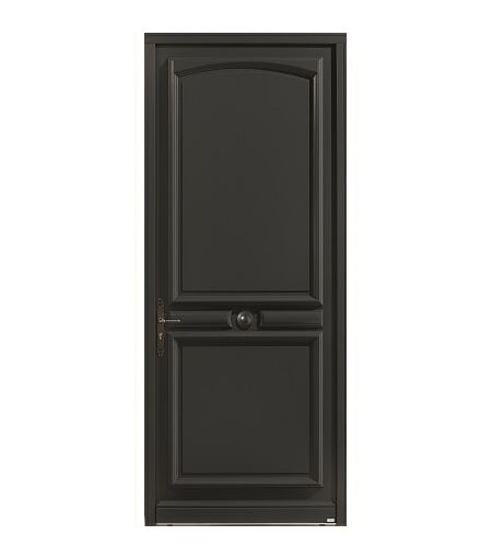 Porte d'entrée (CID) en Chêne modèle ASTOR Porte pleine Face intérieure 1 panneau haut rectangle et 1 panneau bas sans cimaise Dormant de 58 mm - Ouvrant de 58 mm Seuil Alu 20 mm Paumelles tridimentionnelles Serrure à relevage 2 rouleaux + 2 crochets + 2 pênes centraux Poignée et pommeau rustique Cylindre standard livré avec 3 clés ...