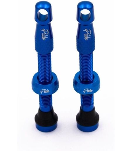 Valves tubeless 44mm Presta Cap aluminium usinée CNC, démonte obus intégré Logos Pride Racing gravés au laser sur la cap et l'écrou de serrage Joints silicone pour une étanchéité maximale Écrou de serrage, serrage avec une clé plate 10mm Compatible jante tubeless aluminium/carbone Usage BMX/ MTB Poids: 10g (la paire) Livrées par paire. ...