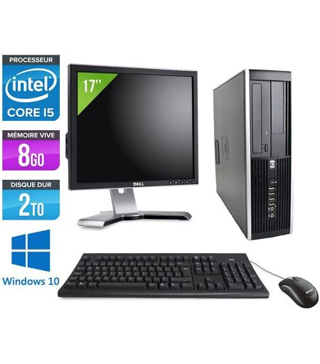 HP Elite 8200 SFF + Ecran 17'' - Intel Core i5-2400 / 3.10 GHz - RAM 8 Go - HDD 2 To - DVD - GigaBit Ethernet - Windows 10 Professionnel