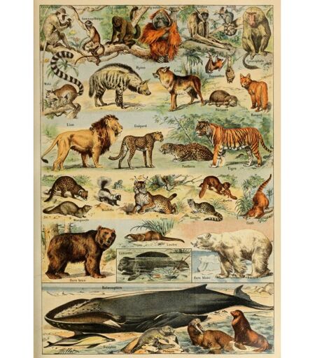 Grafika Illustration du Larousse pour Tous : Mammifères, XIXè Siècle