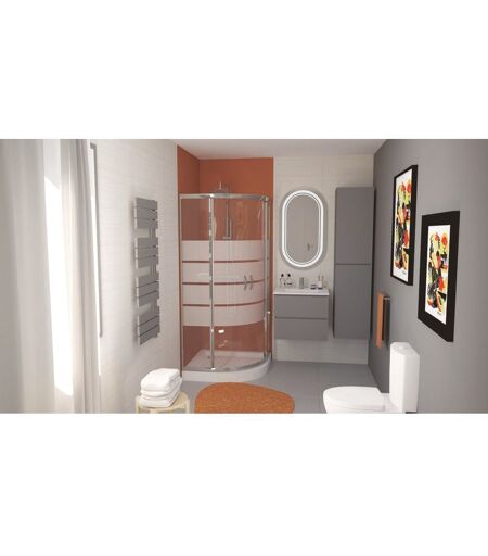 Façade SHIVA, Façade coul. 1/4 de cercle. 90x90x190cm A propos de l'article (technique) Dimension : H190xR90cm Façade coulissante accès d'angle 1/4 de cercle Verre trempé épaisseur 5mm Traitement anticalcaire Installation réversible Profilé en aluminium (ajustable -10/+5mm) Poignées longues en ABS gris Fermeture des portes aimantée Roulettes à billes déclipsables Sérigraphie givrée 4 bandes en brise-vue Précaution d'emploi Dans les régions dites "calcaires", nous préconisons d'utiliser un adoucisseur d'eau pour un meilleur confort ...
