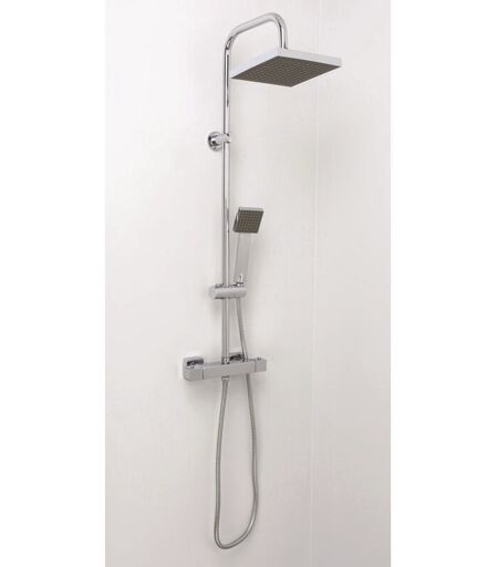 Barre de douche CELO. 95x26cm - ABS chromé - Douche de tête carrée 20x20cm - Douchette monofonction avec support ajustable en hauteur - Flexible chromé 150cm avec double agrafage - Mitigeur à touche éco et butée à 38°Dimensions : 95x26cm - Dimensions : 95x26cm - Barre de douche ABS chromé - Diamètre de la barre 2,5cm - Douche de tête carrée 200x200mm, orientable, avec picots anticalcaires - Douchette multifonction avec picots anticalcaires associée à un support ajustable en hauteur - Flexible chromé 150cm avec double agrafage - Mitigeur avec touche éco et butée de sécurité à 38° Ce produit de la collection Zen à Vivre vous assure un confort sans égal et vous permet profiter de votre intérieur en toute sérénité. ...