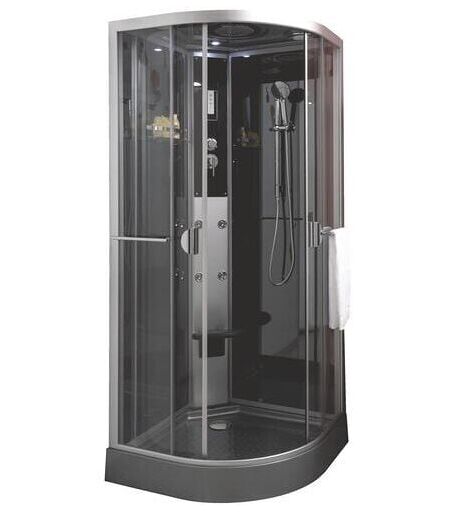 Description générale Découvrez la cabine de douche hydromassante NED, un espace de bien-être alliant confort et technologie. Avec son montage sans silicone, cette cabine d'angle en ¼ de cercle (90 x 90 cm) est conçue pour s'intégrer facilement dans votre salle de bain. Spécifications techniques Dimensions : 90 x 90 x 228 cm Matériaux : Verre trempé de 5 mm et PVC Receveur : Monobloc en acryl gris antidérapant, hauteur 15 cm Poids net : 95 kg Douche de tête : Ø 20 cm, intégrée dans le toit 4 buses massantes Mitigeur mécanique avec inverseur de fonctions, finition chromée Compatibilité et accessoires Inclus : Bonde de 90 mm montée en usine Prévoir l'achat de 2 flexibles 15x21 F/F pour raccordement Installation Installation réversible et simplifiée, livrée en kit avec instructions claires. Aucun silicone n'est nécessaire pour le montage. Utilisation Douchette à main avec 3 fonctions Colonne avec 4 jets de massage Siège relevable en PVC pour un confort accru Étagère en verre pour le ...