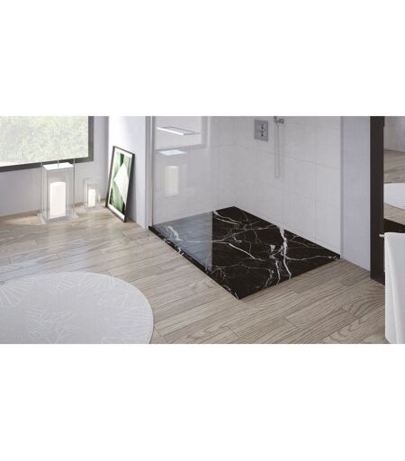 Ondee - zen - Receveur de douche nola 3 - 80x160x3 - Résine - Marbre noir - Bonde - Découpable