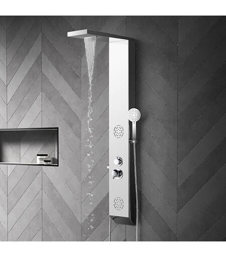 Optez pour le colonne de douche hydromassante chromé 2 jets GS012 !Optez pour la modernité dans votre salle de bain avec la colonne de douche hydromassante chromé 2 jets GS012 et son look ultra tendance. Elle possède un dôme de pluie perpendiculaire à la colonne, 2 jets circulaires pour un modelage détente, une douchette très ergonomique et pratique et deux boutons sélecteurs.Avec la colonne de douche en inox GS012, vous sublimerez l'intérieur de votre salle de bain en vous accordant un vrai moment de bien-être quotidien grâce à ses fonctions hydromassantes. Qui plus est, ses lignes modernes et épurées seront un véritable atout décoratif pour votre salle de bain. L'occasion de soigner le style de cette dernière avec une colonne de douche avec robinetterie ultra moderne.Profitez d'un moment de détente avec les 2 jets La colonne de douche hydromassante chromé 2 jets GS012 est l'occasion de profiter d'un véritable moment de détente grâce à ces 2 jets. Cette colonne de douche en inox ...