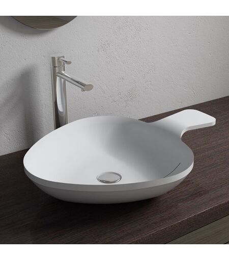 Vasque à poser en solid surface SDV14 Apportez du style à votre salle de bain avec cette petite vasque design en solid surface blanche. Son design en "cuillère" original est possible grâce au solid surface qui permet de mouler des formes originales tout en gardant une grande résistance. De plus, ce matériau moderne a un fini lisse et mat très élégant. Pratique, cette vasque est livrée avec une bonde push&up.; Livré sans robinetterie, sans siphon et sans miroir. Livré avec bonde push&up. ...