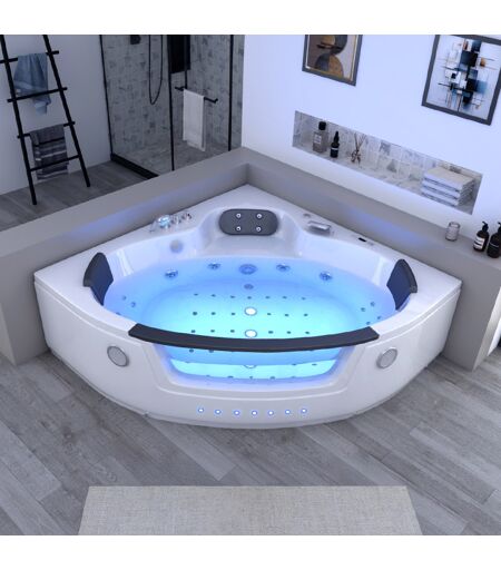 Baignoire balnéo d'angle de luxe spa Brésilia 2 places 44 jets Brésilia est une baignoire balnéo d'angle pour deux personnes idéale pour des moments de complicité et de détente. Vous disposez de nombreux jets de massage, de la chromothérapie et d'une cascade d'eau pour un bien-être total. Le + : Brésilia dispose d'une place assise en angle avec dossier confort percé, et jets hydromassants. ...