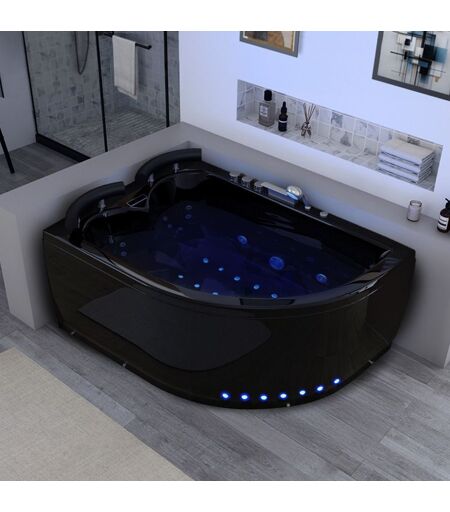 Distribain Baignoire balnéo asymétrique D-Maori Black whirlpool 32 jets