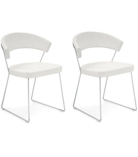 CONNUBIA-CALLIGARIS Lot de 2 chaises NEW YORK design italienne structure acier chromé assise cuir blanc