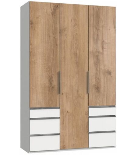 WIMEX Armoire de rangement LISBETH 3 portes chêne 6 tiroirs blanc 150 x 236 cm hauteur