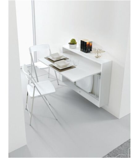 TAVOLO un bureau ou table a manger extensible au design original et moderne qui trouvera sa place facilement dans un bureau, une cuisine ,entrée, un salon ou bien encore dans une chambre.. PARFAIT pour les petits espaces. Pratique et astucieux, pour y travailler ou déjeuner dispose d'un espace de rangement qui vous permettra d'y ranger jusqu'à 3 chaises pliantes ZETA. Existe en plusieurs coloris : Blanc opaque/gris taupe/gris ardoise/noir charbon/chêne/Noyer CARACTÉRISTIQUES TECHNIQUES : - Plateau : Laminé Blanc opaque. - Épaisseur bois : 18 mm -INCLUS : 3 chaises ZETA blanche. DIMENSIONS : - Longueur : 100 cm - Hauteur : 72 cm - Profondeur : 20 cm Dimensions (cm) : L100 x H72 x P20 ...