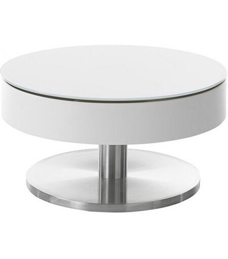 MCA FURNITURE Table basse ronde VOLA 79 cm diamètre-plateau HWP blanc pivotant piétement acier brosse
