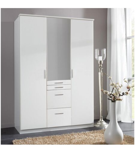 WIMEX Armoire penderie blanche ARRON 3 portes battantes 4 tiroirs