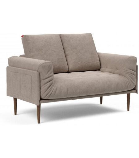 INNOVATION LIVING Canapé convertible lit ROLLO STYLETTO CLASSIC pieds chêne foncé tissu Cordufine Beige